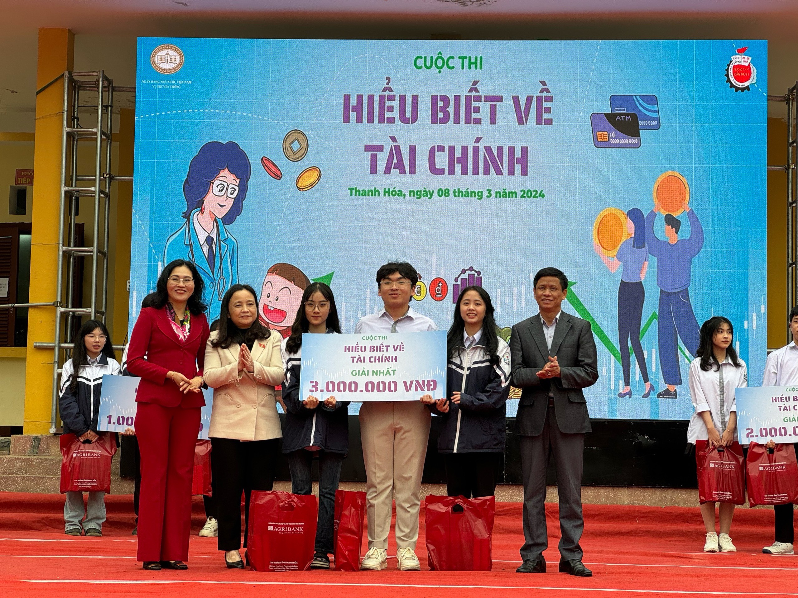 Các em học sinh được giải nhất trong cuộc thi “Hiểu biết về tài chính”. Ảnh: SBVQua đó, giúp các em học sinh sớm tiếp cận với kiến thức cơ bản về tài chính, như: chi tiêu hợp lý, tiết kiệm, đầu tư; đồng thời, có những hiểu biết về tiền và lịch sử đồng tiền Việt Nam, cách ứng xử với đồng tiền, biết quý trọng giá trị sức lao động.