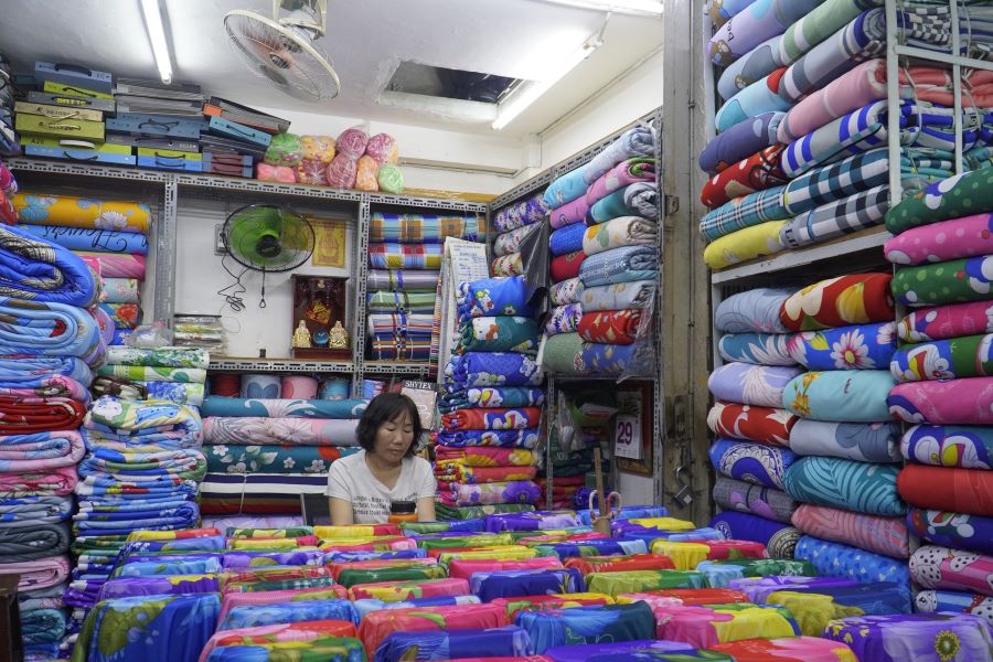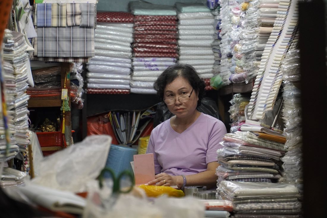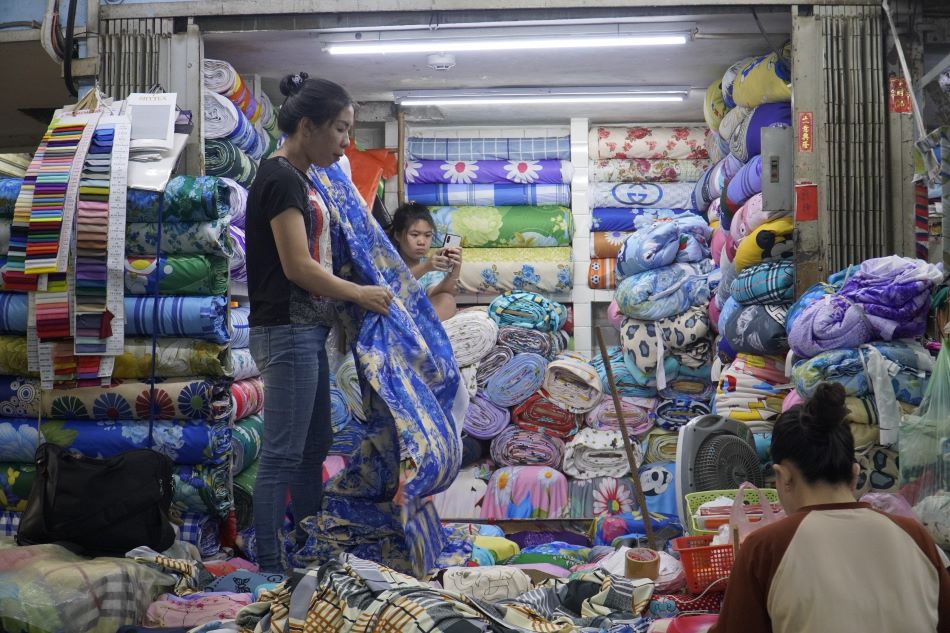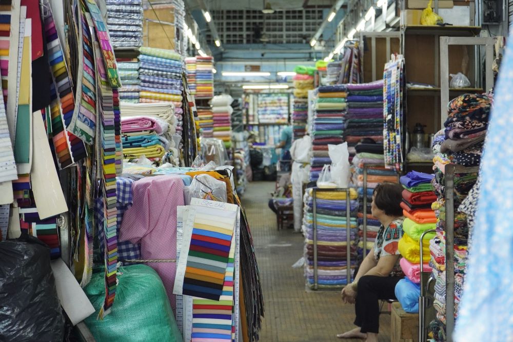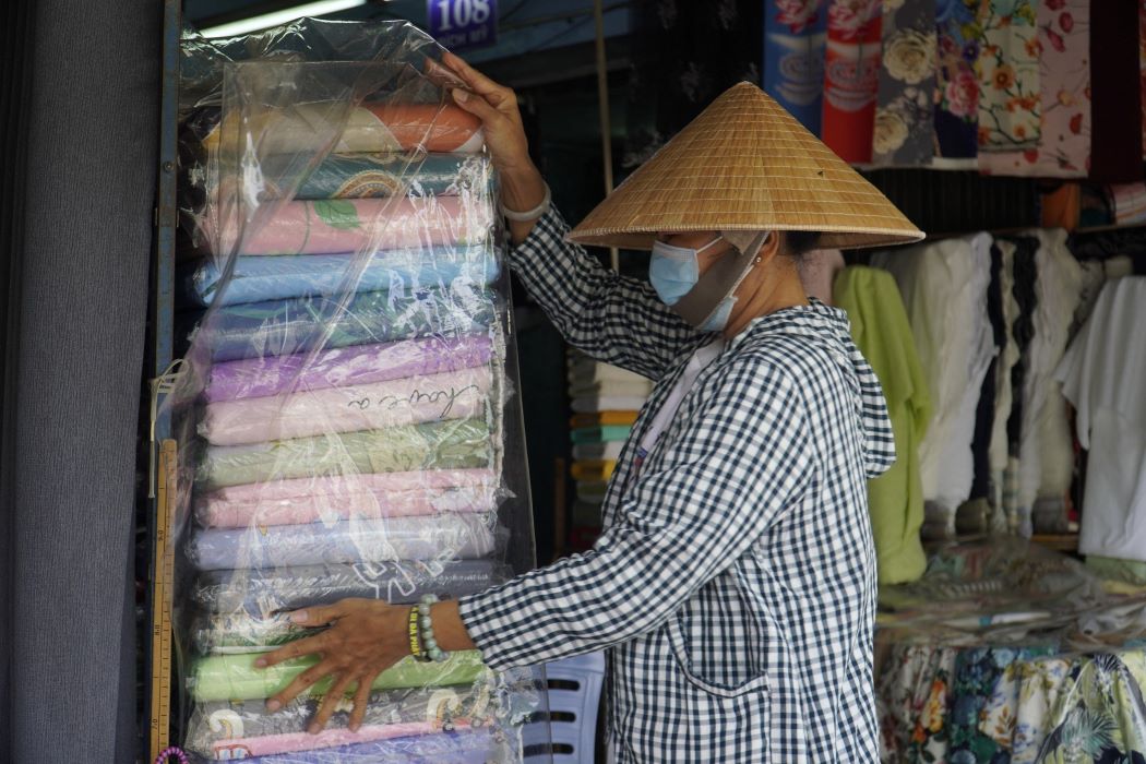 Ghi nhận tại Thương xá Đồng Khánh (hay còn được gọi là chợ Soái Kình Lâm, Quận 5), nơi đây từng là "thiên đường" vải vóc nhộn nhịp nhất ở TPHCM, nay trong cảnh ế ẩm, vắng khách mua.