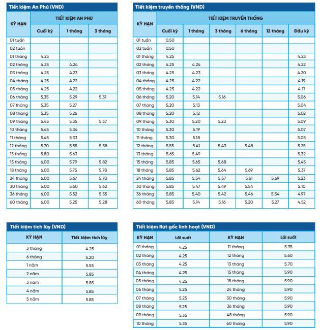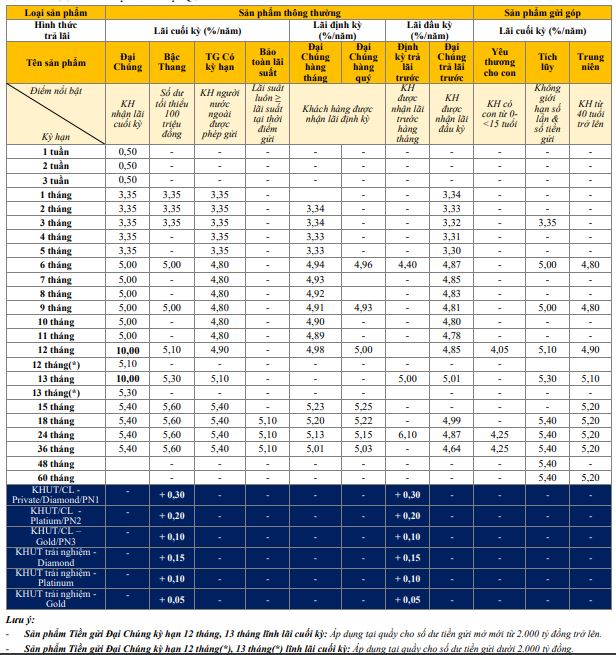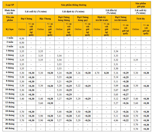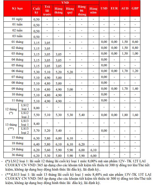 Thông tin về lãi suất chỉ mang tính chất tham khảo và có thể thay đổi trong từng thời kỳ. Vui lòng liên hệ điểm giao dịch ngân hàng gần nhất hoặc hotline để được tư vấn cụ thể.