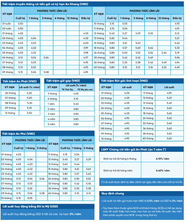 Trường hợp gửi tiết kiệm tại quầy, lãi suất NCB cao nhất là 5,4%.