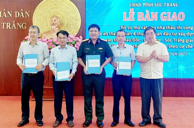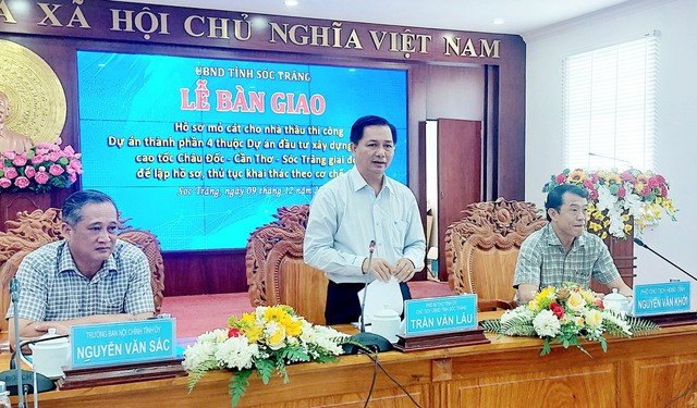 Ngày 9.12, UBND tỉnh Sóc Trăng tổ chức lễ bàn giao hồ sơ, vị trí, trữ lượng khai thác, báo cáo đánh giá tác động môi trường 5 mỏ cát cho các nhà thầu thi công Dự án thành phần 4 thuộc Dự án đầu tư xây dựng đường bộ cao tốc Châu Đốc - Cần Thơ - Sóc Trăng (giai đoạn 1) để nhà thầu lập hồ sơ, thủ tục khai thác theo cơ chế đặc thù.