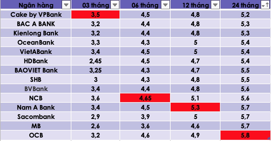 * Thông tin về lãi suất chỉ mang tính chất tham khảo và có thể thay đổi trong từng thời kì. Vui lòng liên hệ điểm giao dịch ngân hàng gần nhất hoặc hotline để được tư vấn cụ thể.