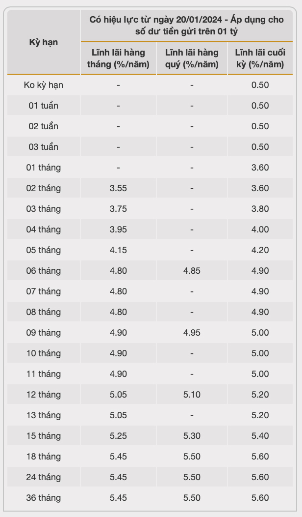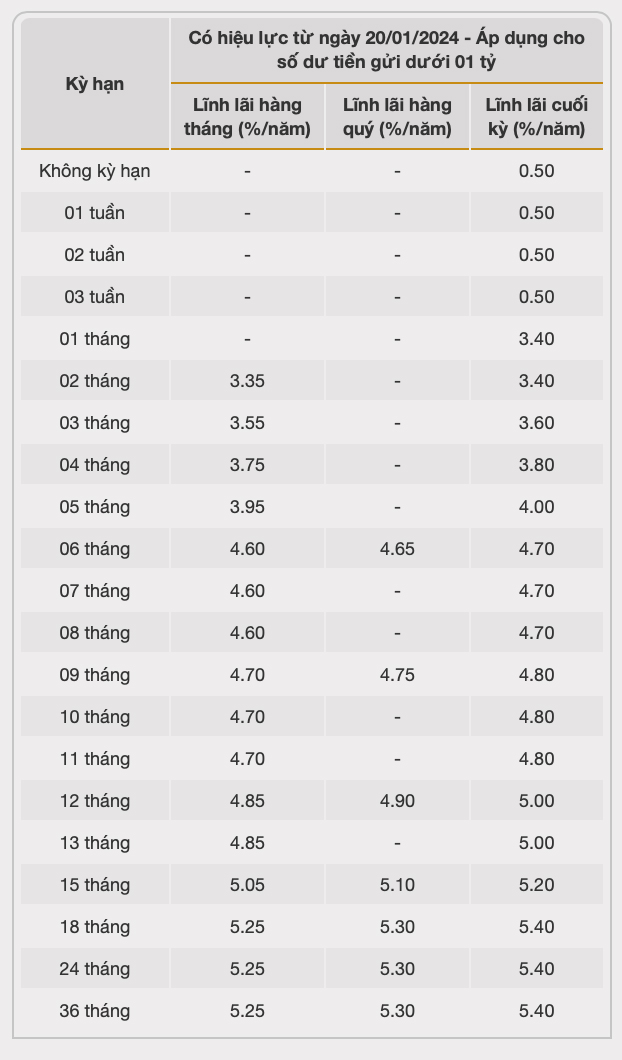 Bảng lãi suất mới này sẽ được áp dụng từ ngày 20.1.