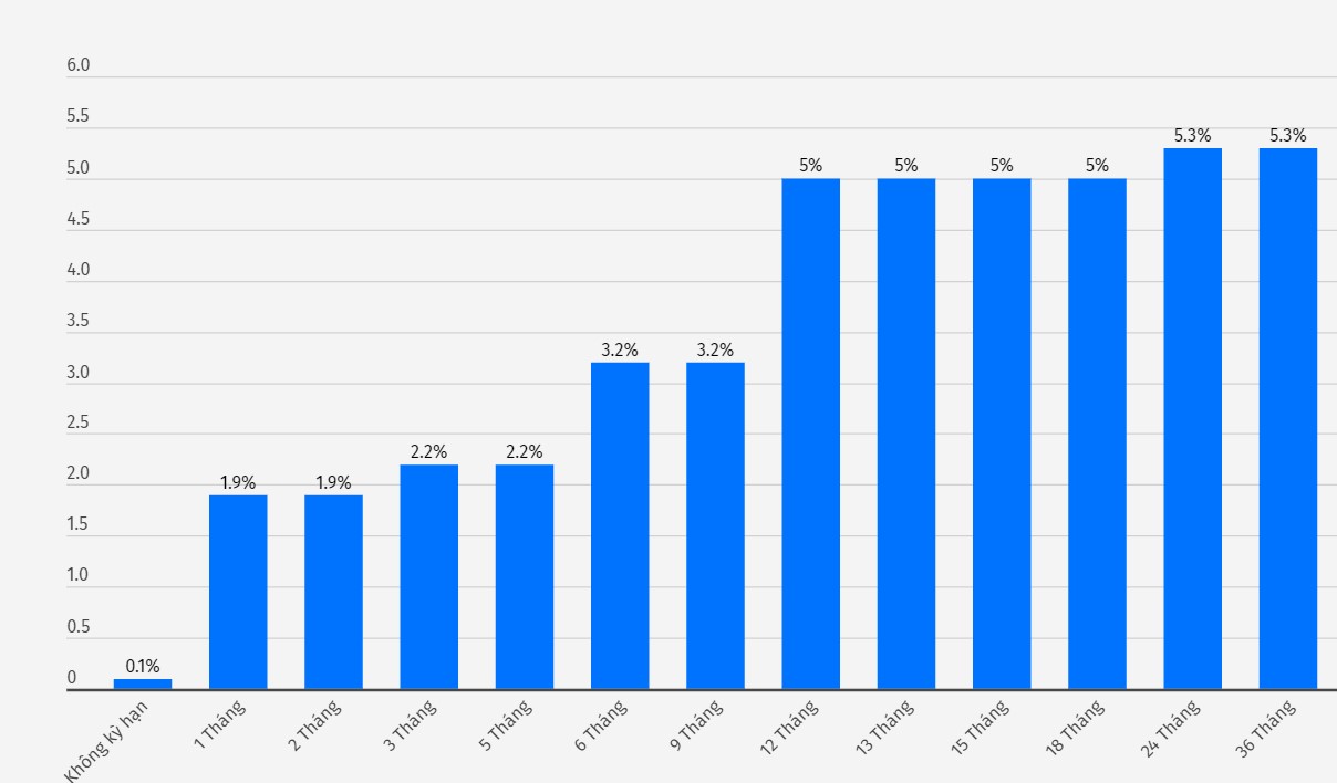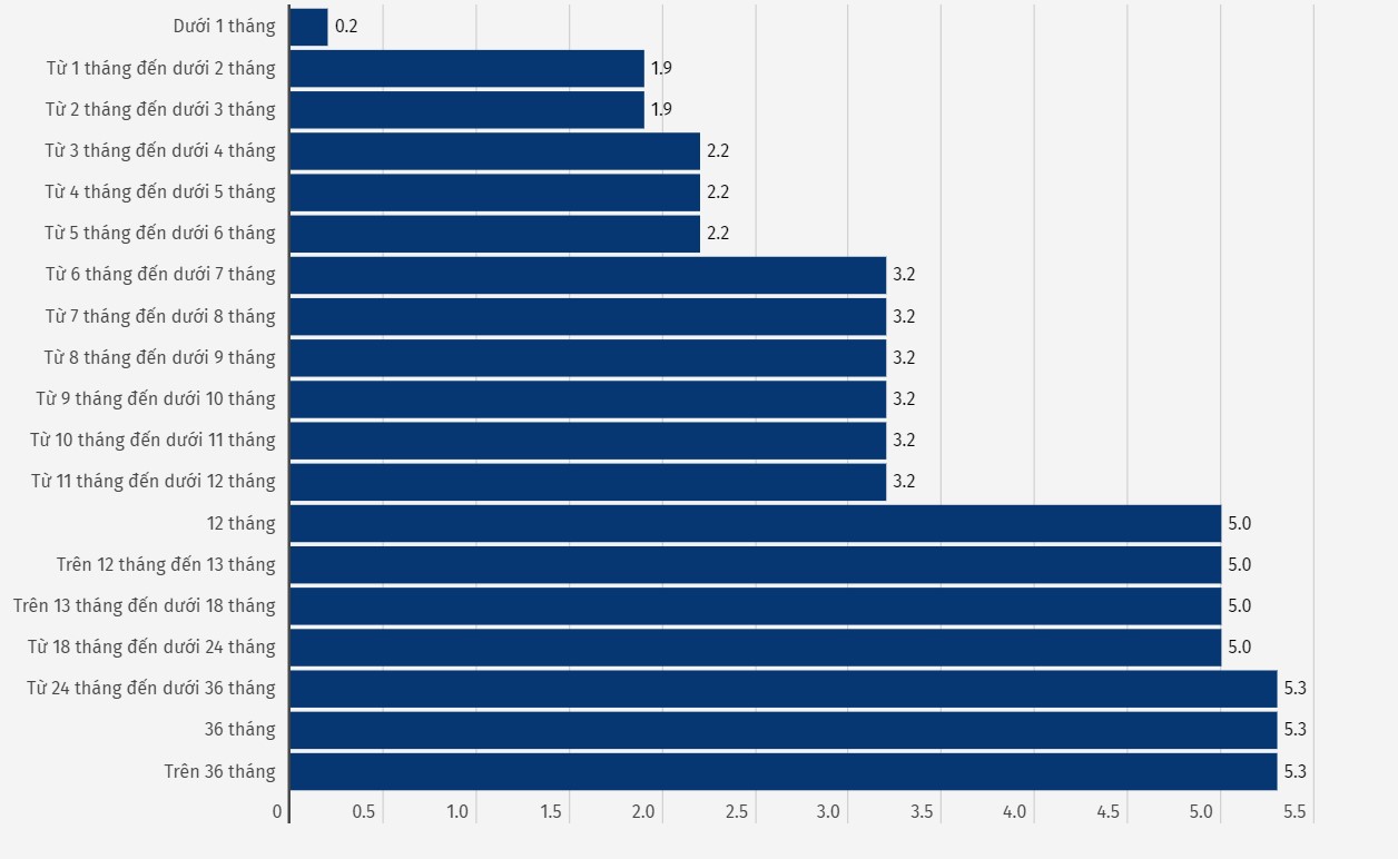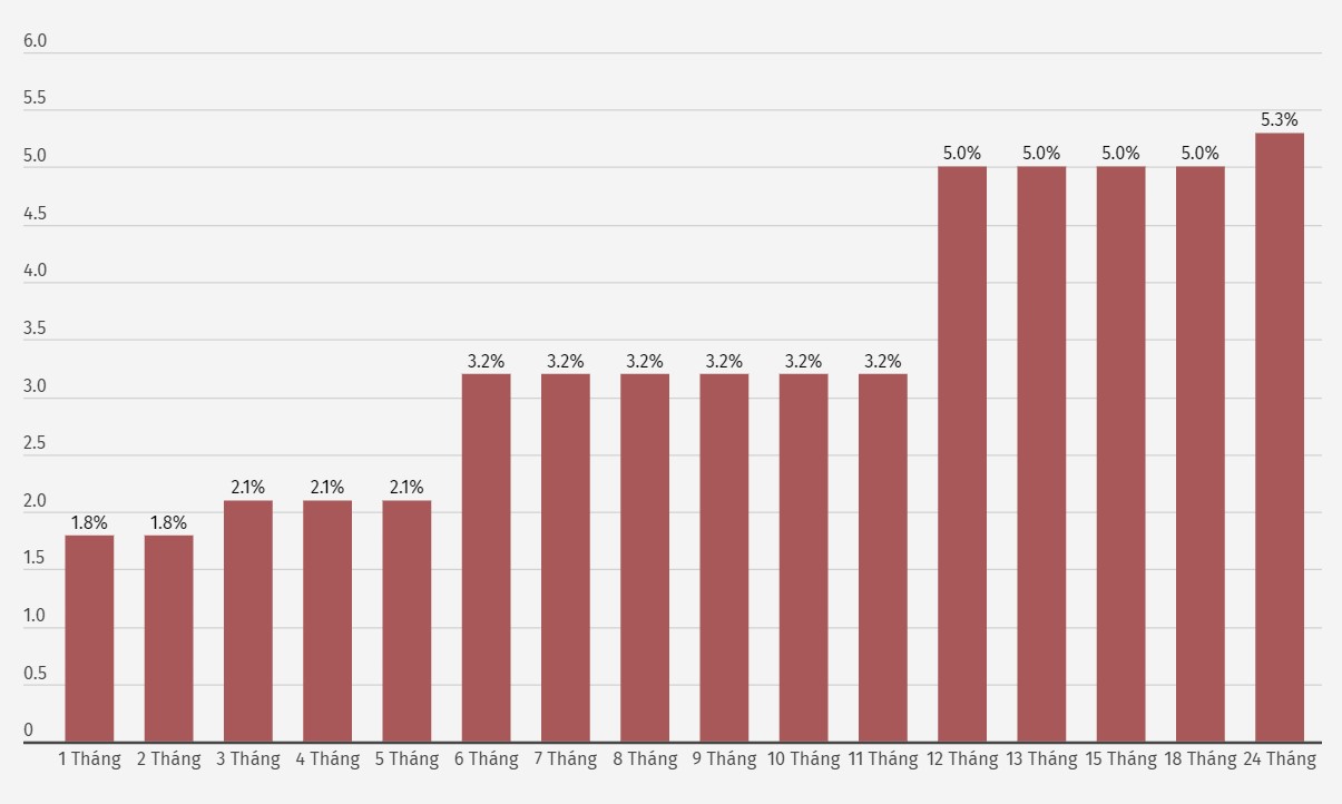 Cập nhật biểu lãi suất của VietinBank. Đơn vị tính: %/năm. Biểu đồ: Khương Duy