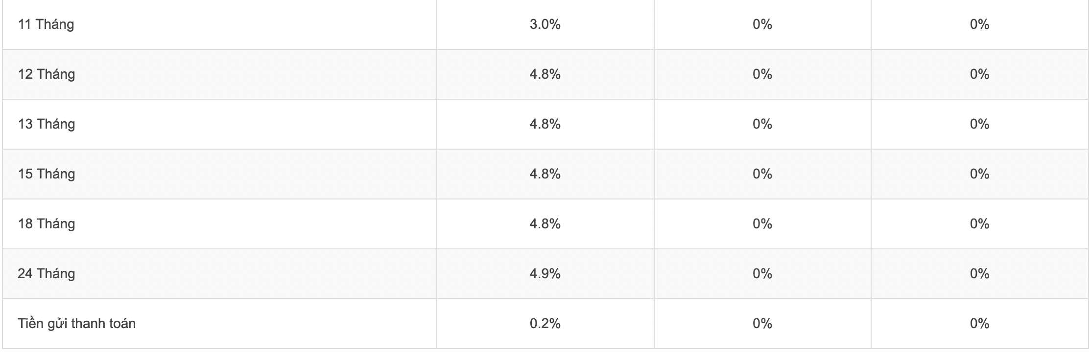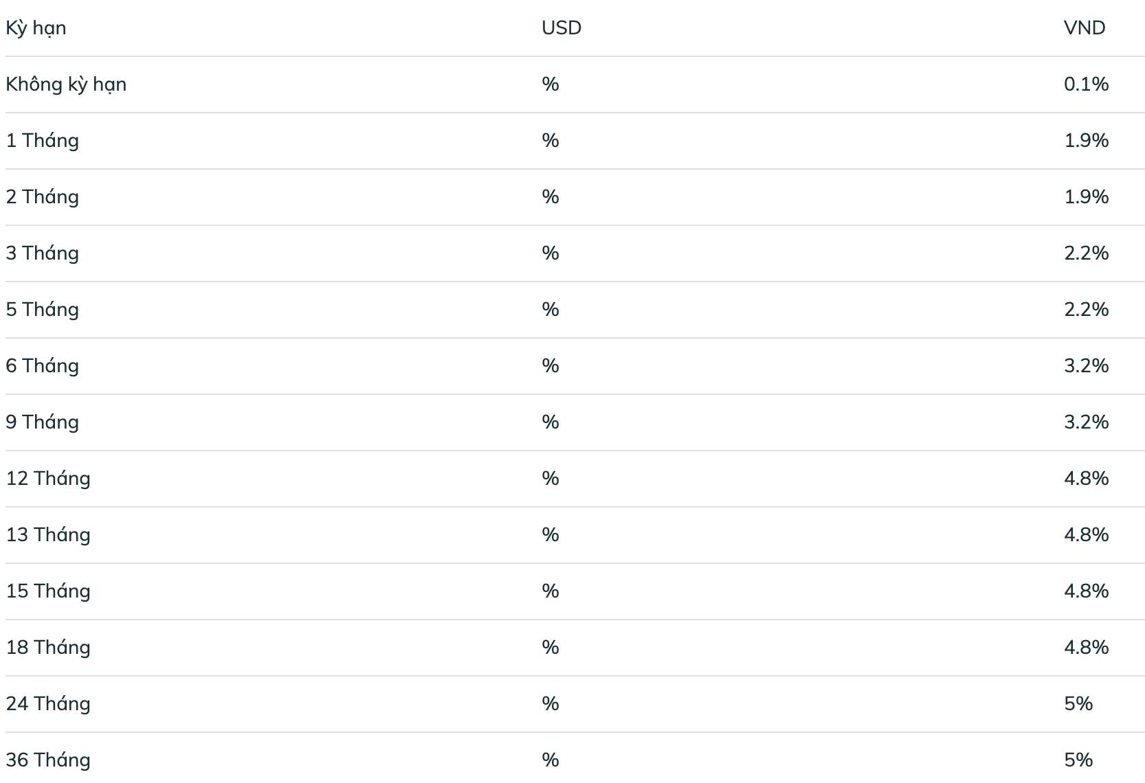 * Thông tin về lãi suất chỉ mang tính chất tham khảo và có thể thay đổi trong từng thời kỳ. Vui lòng liên hệ điểm giao dịch ngân hàng gần nhất hoặc hotline để được tư vấn cụ thể.