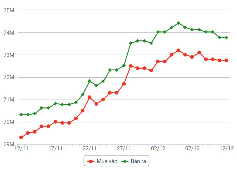 Giá vàng chốt phiên ngày 12.12.Diễn biến giá vàng trong nước
