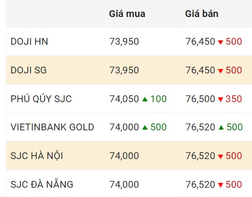 Giá vàng trong nước