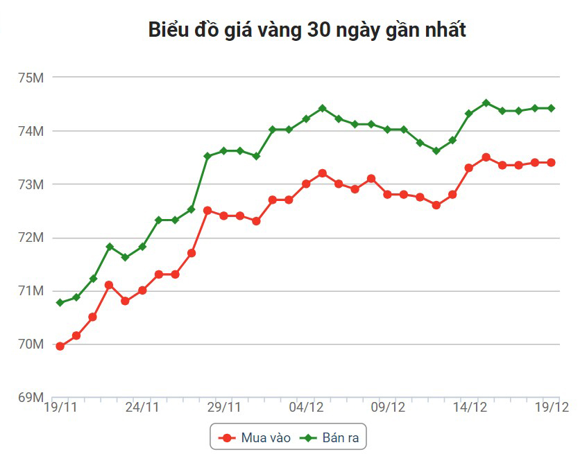 Giá vàng trong nước chốt phiên 19.12.Diễn biến giá vàng trong nước