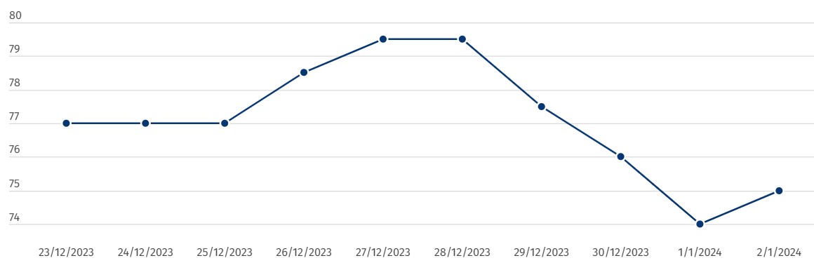 Cập nhật giá vàng trong nước chốt phiên 2.1.2024. Đơn vị: Triệu đồng/lượng