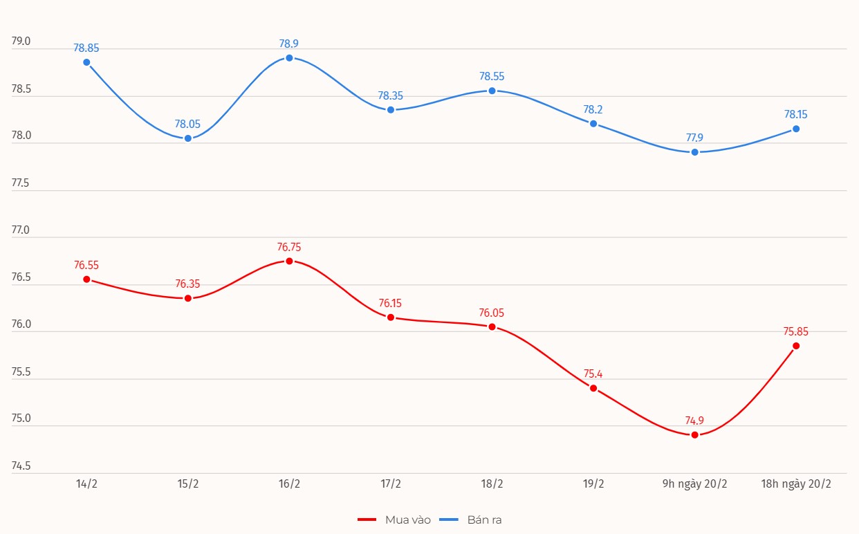 Cập nhật giá vàng trong nước chốt phiên 20.2.2024.