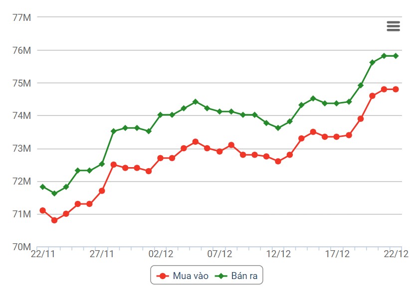 Giá vàng trong nước chốt phiên 22.12.Diễn biến giá vàng trong nước