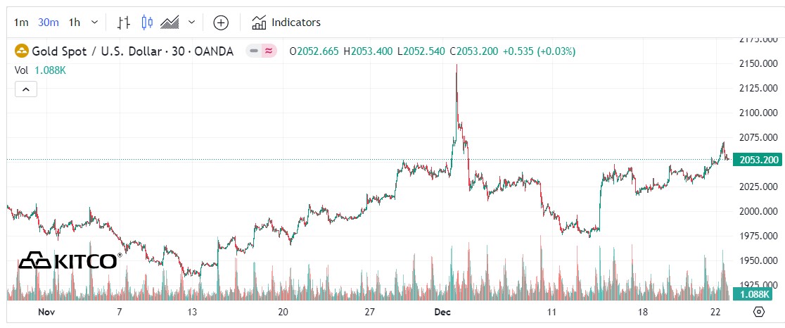 Kim loại quý nhận hỗ trợ sau khi báo cáo do Bộ Thương mại Mỹ được công bố cho thấy chỉ số giá tiêu dùng cá nhân lõi (PCEI lõi) tháng 11 đi lên 0,1% so với tháng 10 và tăng 3,2% so với cùng kỳ năm trước. Trước đó, các nhà kinh tế được Dow Jones khảo sát dự đoán PCE lõi sẽ tăng tương ứng là 0,1% và 3,3%.