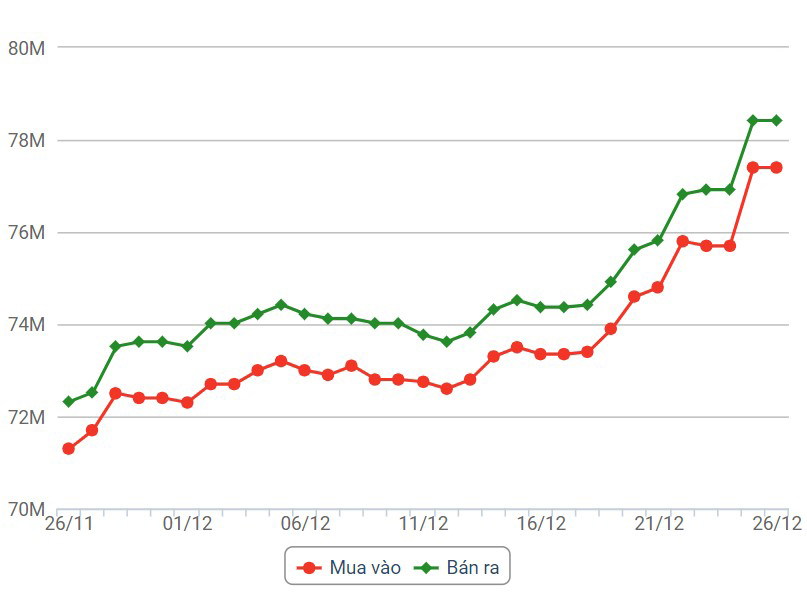 Giá vàng trong nước chốt phiên 26.12.Diễn biến giá vàng trong nước