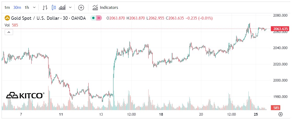 Nguồn: KitcoDù vàng trong nước tăng cao nhưng chênh lệch mua - bán vàng đang quá lớn. Chiều tối nay, mức chênh lệch này đã được các đơn vị kinh doanh trong nước nâng lên ngưỡng 2,3 triệu đồng/lượng.