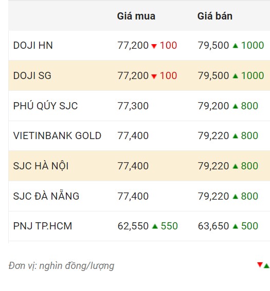 Giá vàng trong nước