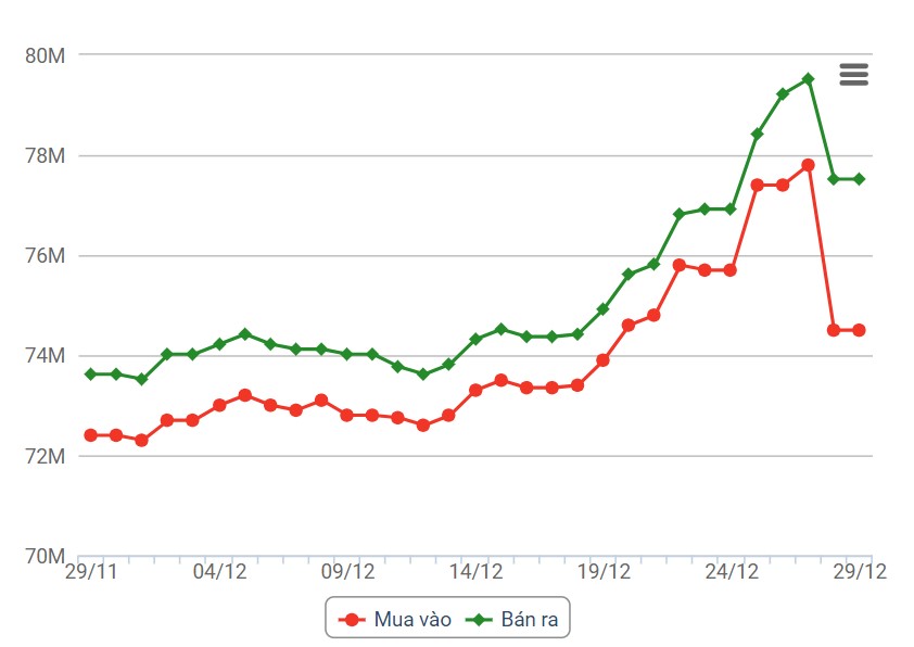 Giá vàng trong nước chốt phiên 29.12.Diễn biến giá vàng trong nước
