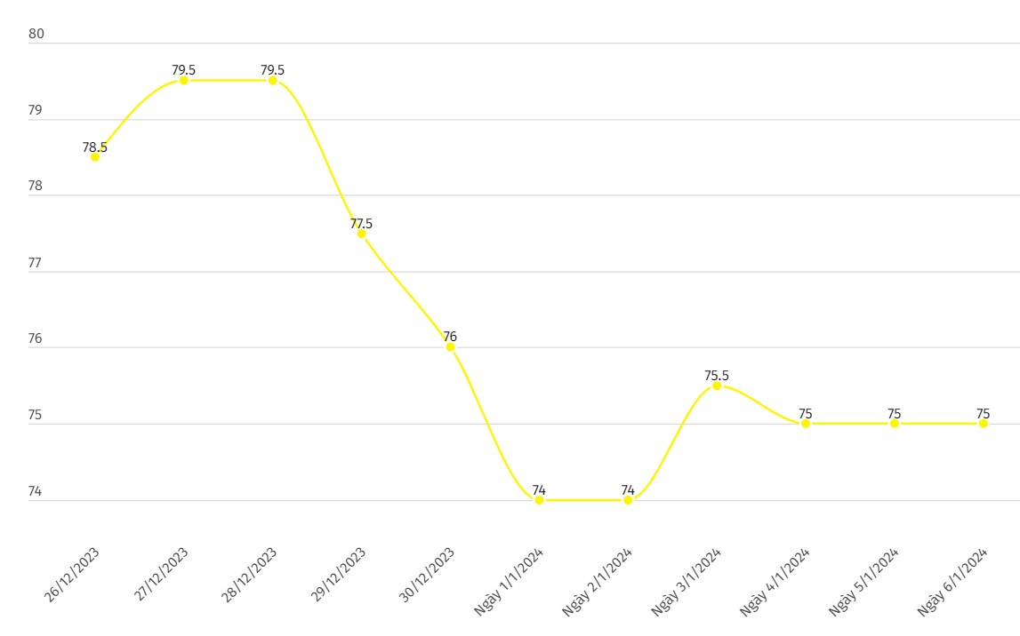Cập nhật giá vàng trong nước chốt phiên 6.1.2024. Đơn vị: Triệu đồng/lượng