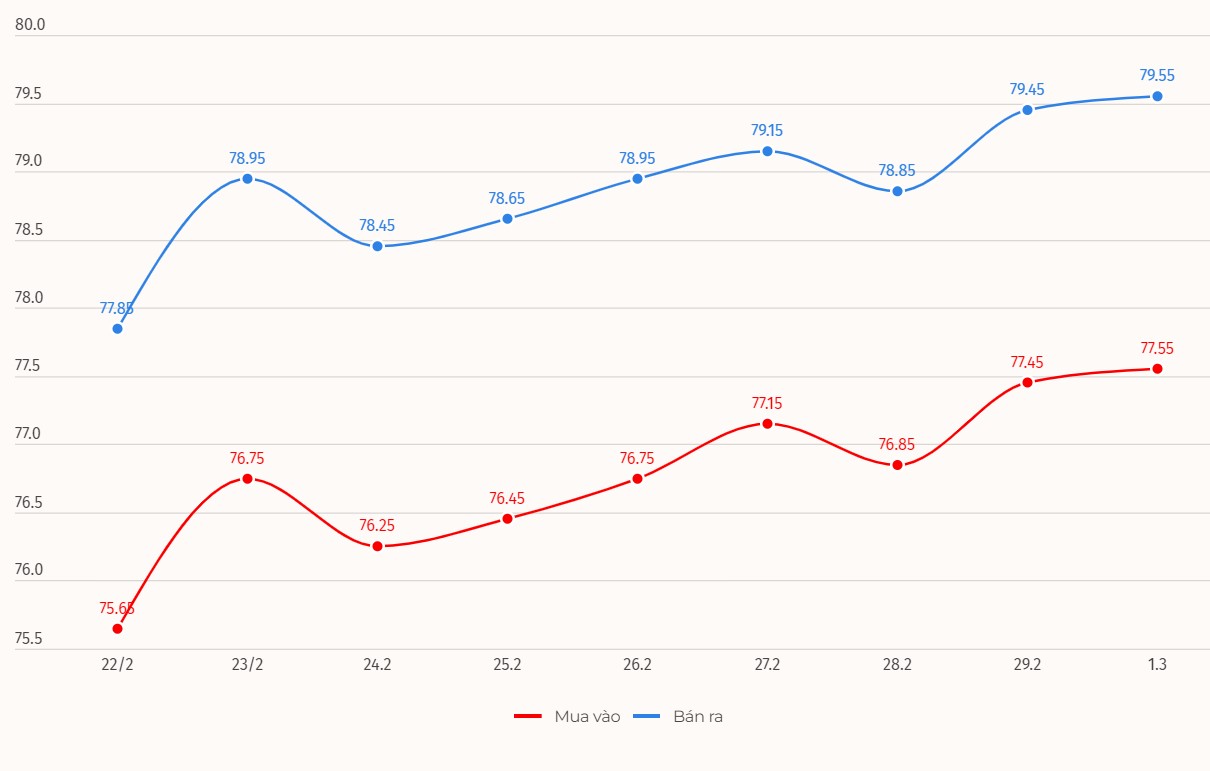 Cập nhật giá vàng trong nước mở cửa phiên giao dịch 1.3.2024.