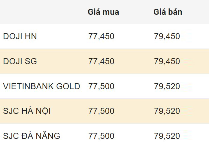 Giá vàng trong nước