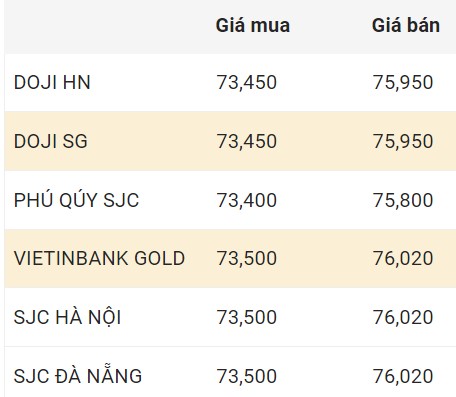 Cập nhật giá vàng trong nước sáng 13.1.2024.