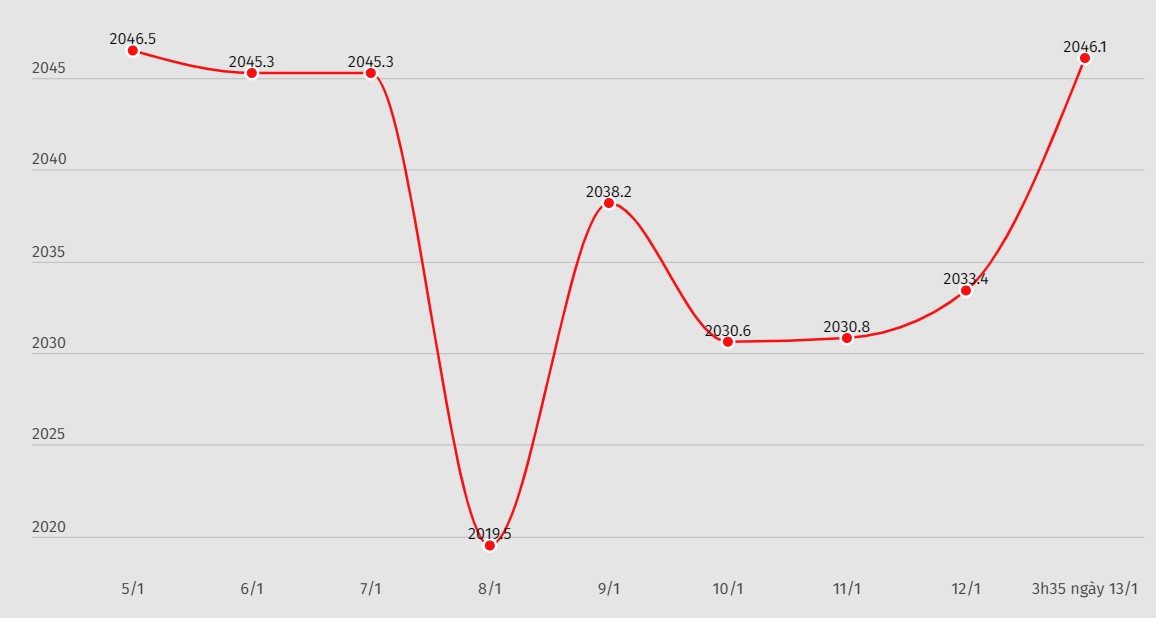Vàng tăng trong bối cảnh giá dầu - mặt hàng có quan hệ mật thiết với kim loại quý tăng 2% vào thứ Sáu khi Mỹ và Anh thực hiện các hành động quân sự đối với lực lượng Houthi ở Yemen sau các hành động tấn công của Houthi nhằm vào các tàu thương mại trên Biển Đỏ.