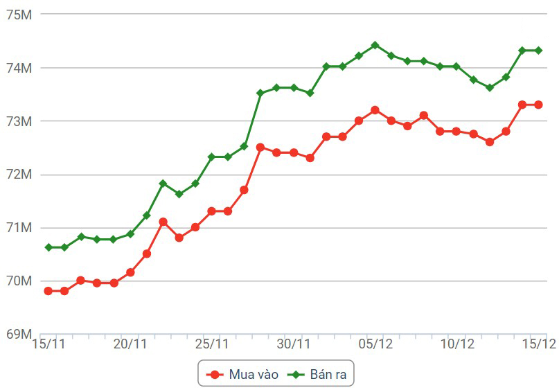 Giá vàng trong nước sáng 16.12.Diễn biến giá vàng trong nước