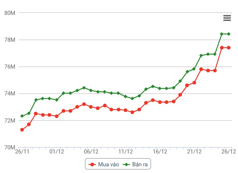 Giá vàng trong nước sáng 27.12Diễn biến giá vàng trong nước