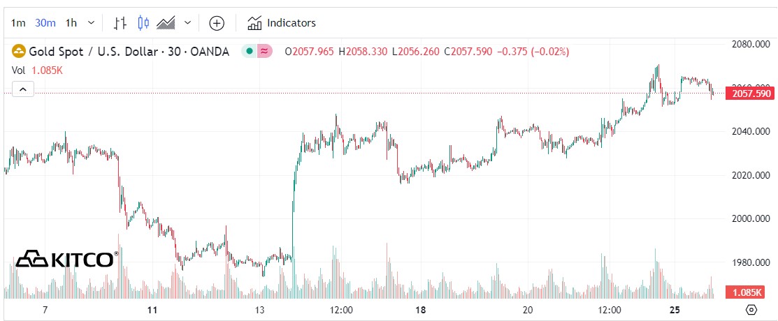 Trong khi đó chiến lược gia Phillip Streible của Blue Line Futures nhận định giá vàng sẽ tiếp tục được hỗ trợ bởi sự suy yếu của đồng USD. Sự bứt phá kỹ thuật gần đây có thể đẩy giá vàng lên ngưỡng 2.100 USD/ounce.