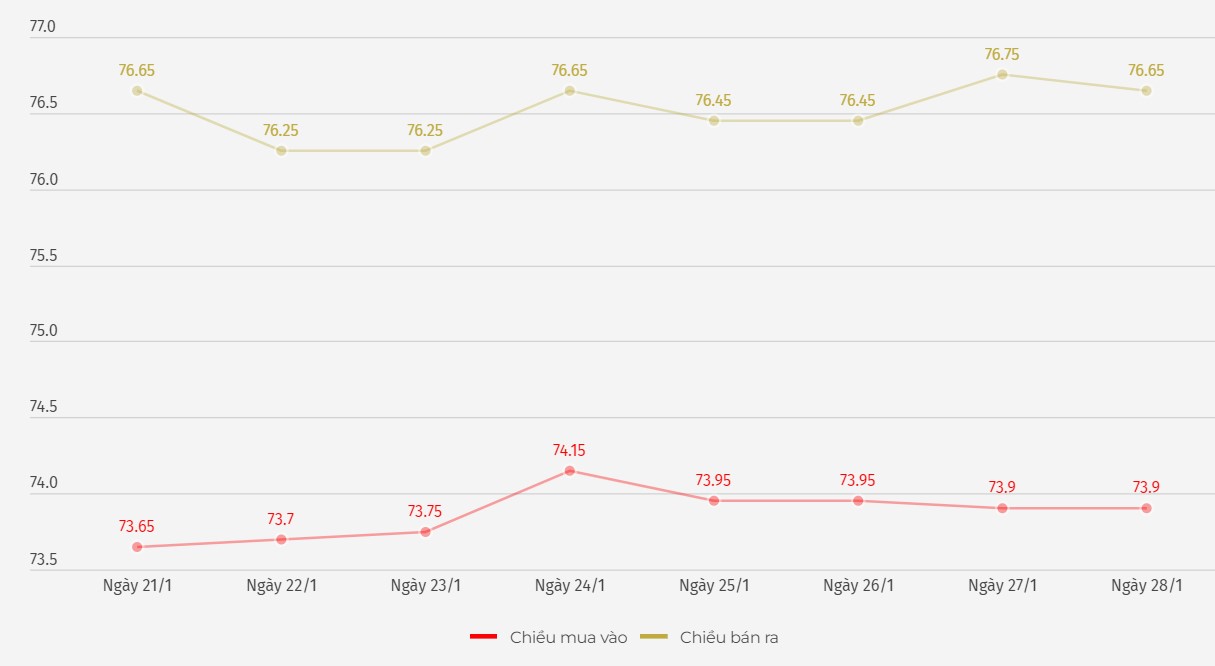 Cập nhật giá vàng trong nước sáng 28.1.2024. Bảng: Khương Duy