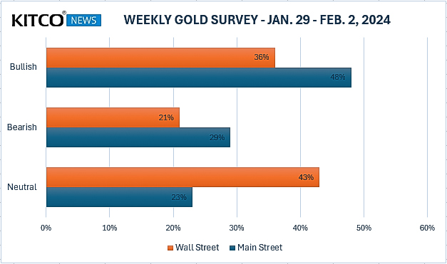 Trong khi đó, 89 phiếu bầu đã được bỏ trong các cuộc thăm dò trực tuyến của Kitco. Trong đó các nhà giao dịch bán lẻ tỏ ra lạc quan hơn một chút nhưng nhìn chung vẫn thiếu quyết đoán. 43 nhà đầu tư bán lẻ (chiếm 48%) kỳ vọng vàng sẽ tăng vào tuần này. 26 người khác (tương đương 29%) dự đoán giá sẽ thấp hơn. Trong khi 20 người được hỏi (tương đương 23%) bày tỏ trung lập về triển vọng ngắn hạn của kim loại quý.