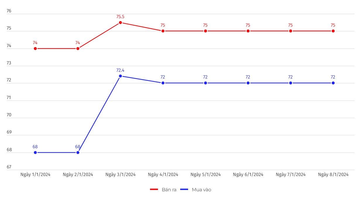 Cập nhật giá vàng trong nước đầu giờ sáng 8.1.2024.