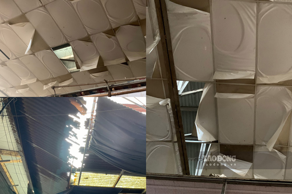 Nhiều mái tôn ở trên trần cũng đã bị hỏng, tiểu thương tại chợ phải vất vả đem hàng gửi nhờ ở nơi khác mỗi khi trời mưa.
