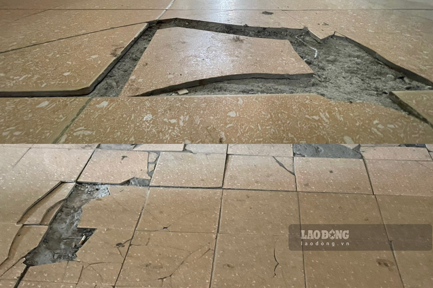 Theo ghi nhận của PV Báo Lao Động ngày 21.2, nhiều gạch lát nền tầng 2 chợ Yên Bái đã bị bong tróc, vỡ toác, khiến việc đi lại trong chợ khó khăn hơn cũng như gây nên ấn tượng xấu trong mắt của khách hàng.