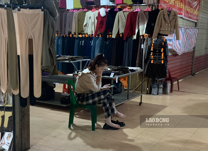 Vắng khách, tiểu thương ngồi lướt điện thoại, thậm chí ngủ gật.