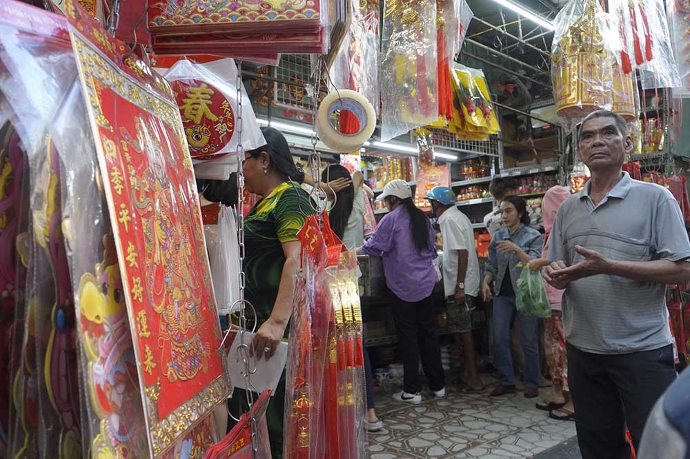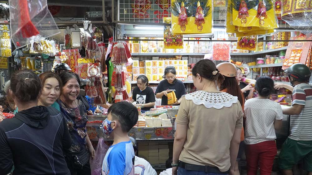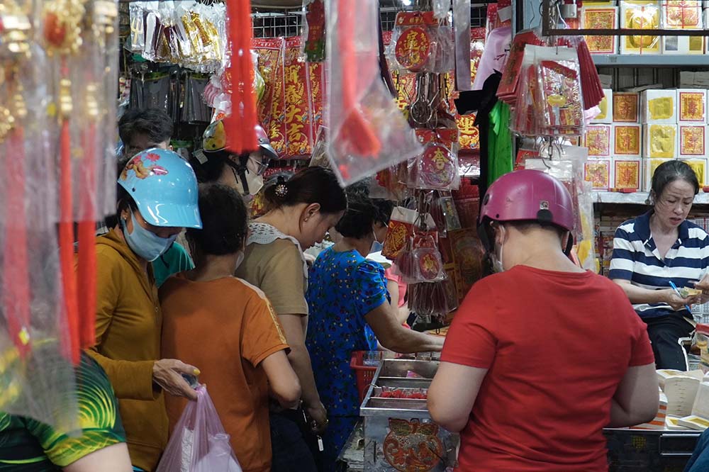 “Năm nào tôi cũng đến đây mua đồ về cúng giao thừa. Không riêng gì Tết, các dịp quan trọng tôi đều đến chợ Thiếc vì giá cả ở đây khá hợp lý“, bà Hoàng Trinh (ngụ Quận 5) cho biết.
