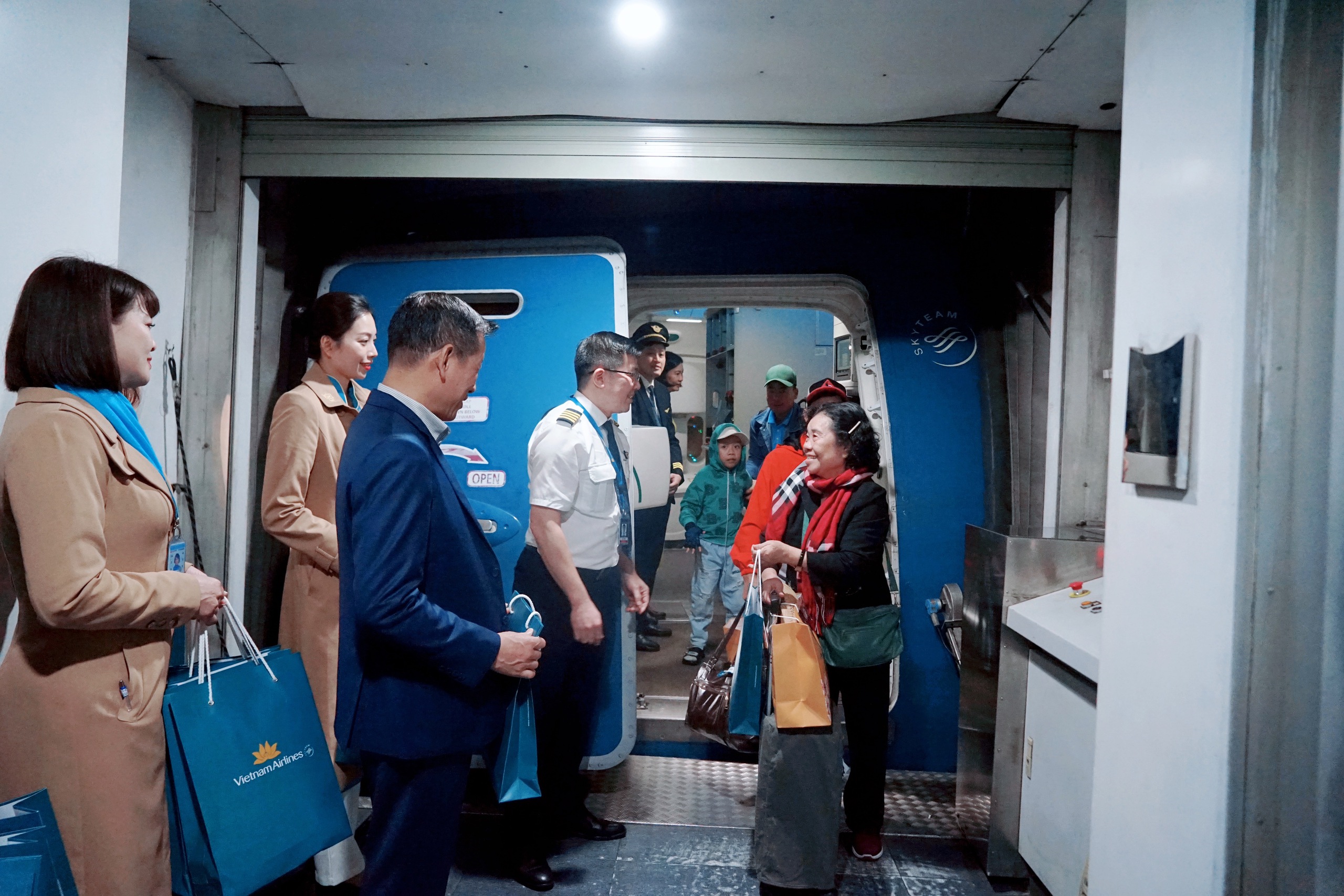 Chuyến bay mang số hiệu VN218 của Vietnam Airlines chở người lao động có hoàn cảnh khó khăn về quê ăn tết khởi hành từ TP.HCM, đáp xuống sân bay Nội Bài (Hà Nội) lúc 20 giờ 15. Anh Lê Văn Hùng là một trong những hành khách trên chuyến bay đặc biệt này.