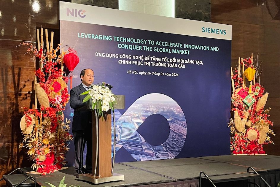 Tại sự kiện, ông Alex Teo - Phó Chủ tịch kiêm Giám đốc Điều hành Phần mềm Công nghiệp Kỹ thuật số Siemens, khu vực Đông Nam Á - đã cùng ông Vũ Quốc Huy ký và trao biên bản hợp tác nhằm phát triển hệ sinh thái đổi mới sáng tạo Việt Nam. Ảnh: Đức MạnhCũng tại hội thảo, đại diện của NIC và một số doanh nghiệp trong lĩnh vực nhà máy thông minh đã đưa ra những nhận định, trao đổi kinh nghiệm và thảo luận về xu thế công nghệ và về vai trò của công nghệ trong quá trình tăng tốc đổi mới sáng tạo và thâm nhập vào thị trường toàn cầu.