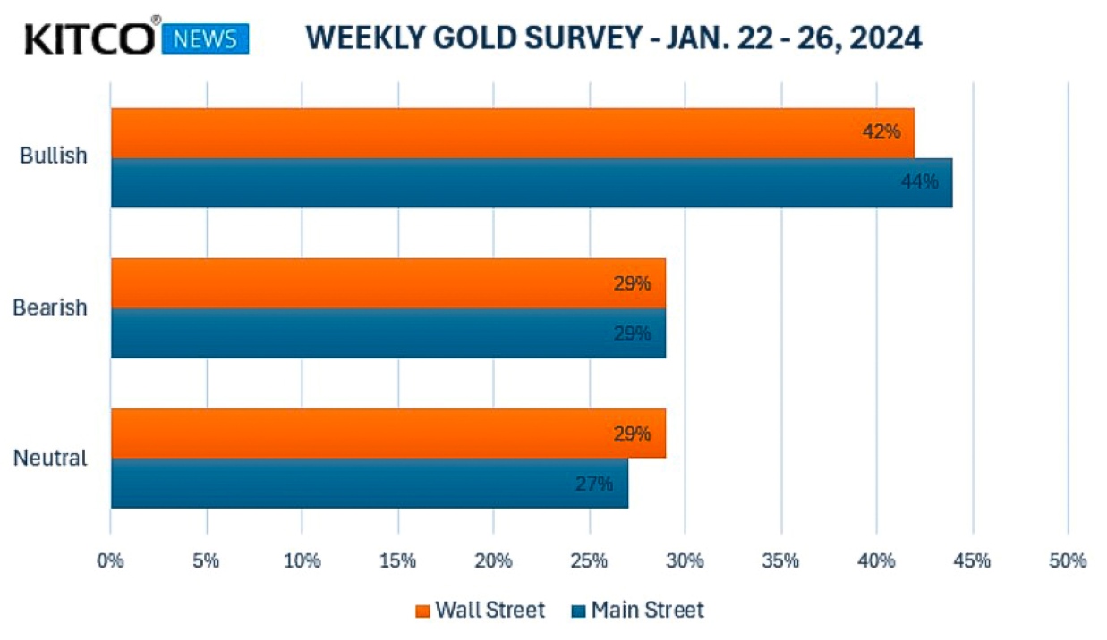 14 nhà phân tích Phố Wall đã tham gia Khảo sát vàng của Kitco News và họ cho thấy xu hướng tăng giá của tuần trước đã suy yếu đáng kể. Sáu chuyên gia (tương đương 42%) dự báo giá vàng cao hơn vào tuần tới. Trong khi đó có bốn nhà phân tích (chiếm 29%), dự đoán giá sẽ giảm; bốn chuyên gia khác (tương đương 29% còn lại) có quan điểm trung lập về vàng trong tuần tới.