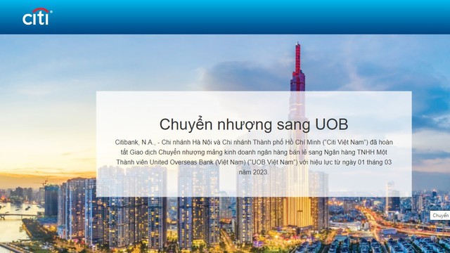 Sáng 1.3, Tập đoàn Citi Group công bố chính thức hoàn tất việc chuyển nhượng mảng ngân hàng bán lẻ và thẻ tín dụng khách hàng cá nhân tại Việt Nam (Citibank Việt Nam) cho UOB, bao gồm cả việc chuyển gần 575 nhân viên làm việc tại mảng này.