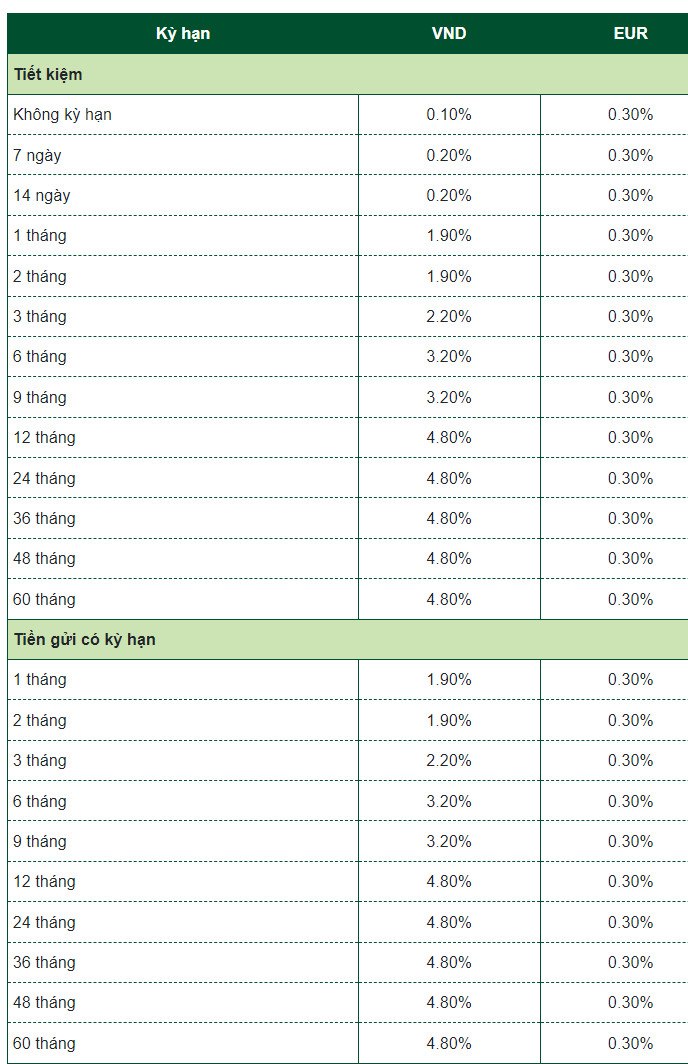 * Thông tin về lãi suất chỉ mang tính chất tham khảo và có thể thay đổi trong từng thời kỳ. Vui lòng liên hệ điểm giao dịch ngân hàng gần nhất hoặc hotline để được tư vấn cụ thể.