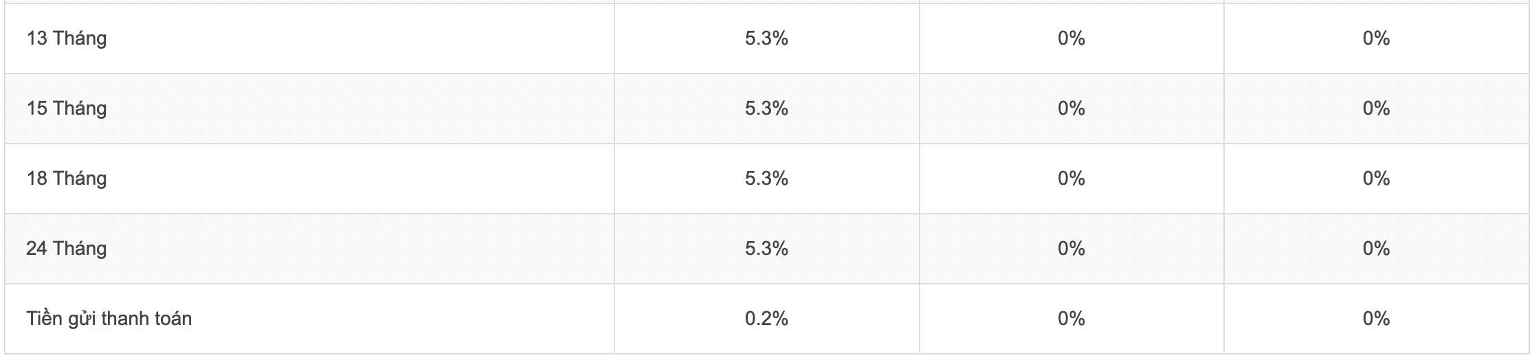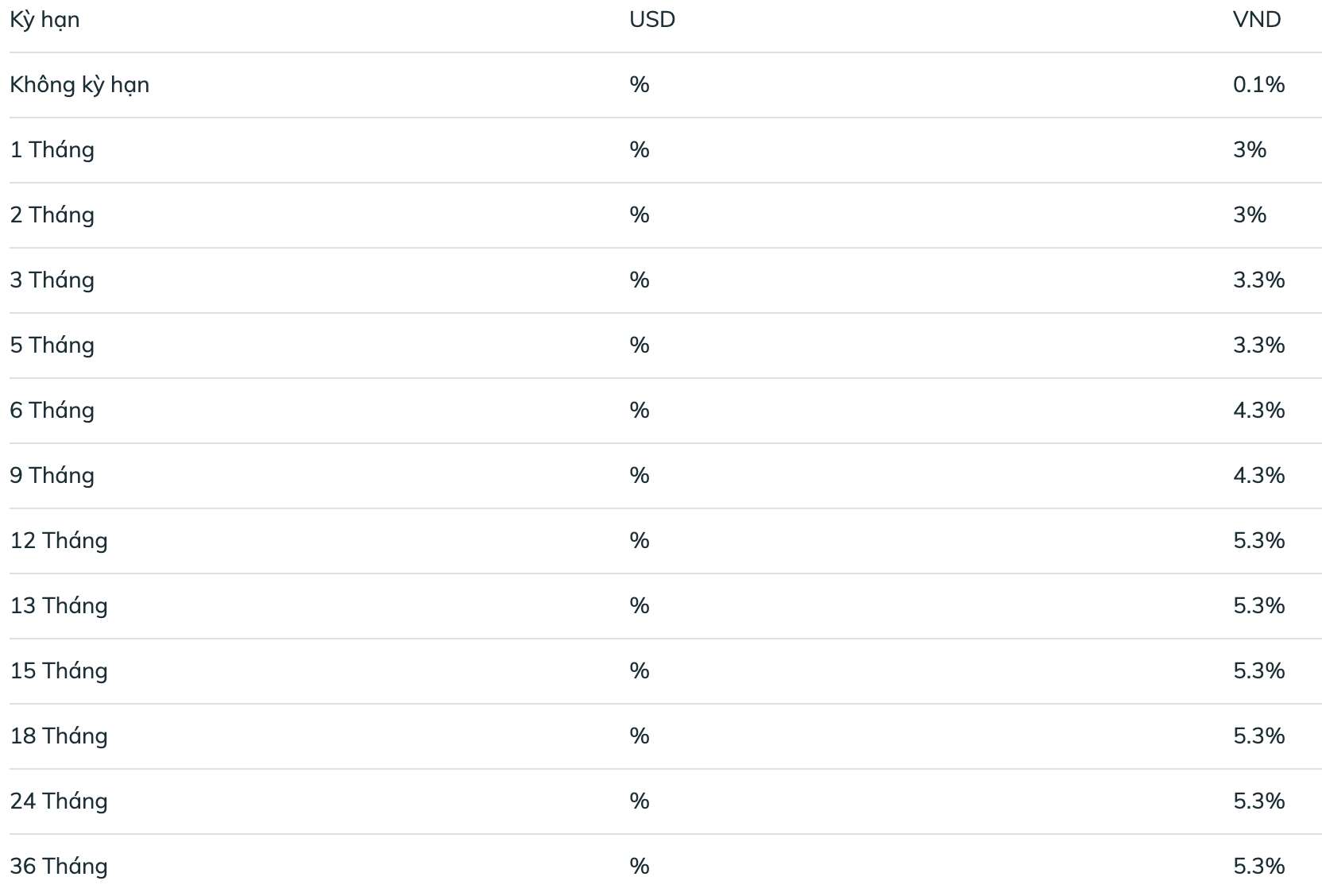 * Thông tin về lãi suất chỉ mang tính chất tham khảo và có thể thay đổi trong từng thời kỳ. Vui lòng liên hệ điểm giao dịch ngân hàng gần nhất hoặc hotline để được tư vấn cụ thể.