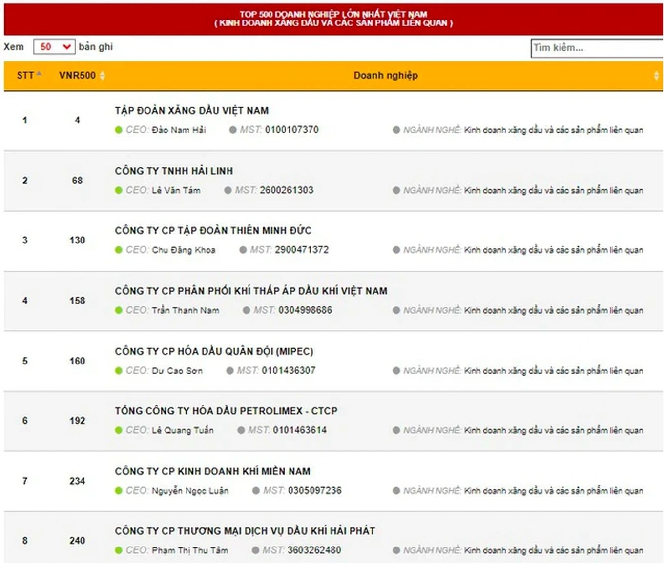 Năm 2022, Công ty TNHH Hải Linh được đánh giá thuộc top đầu kinh doanh xăng dầu ở Việt Nam. Ảnh chụp màn hìnhNăm 2022, Công ty TNHH Hải Linh xếp hạng 68 trong số 500 doanh nghiệp lớn nhất Việt Nam và xếp hạng 33 trong số 500 doanh nghiệp tư nhân lớn nhất Việt Nam.
