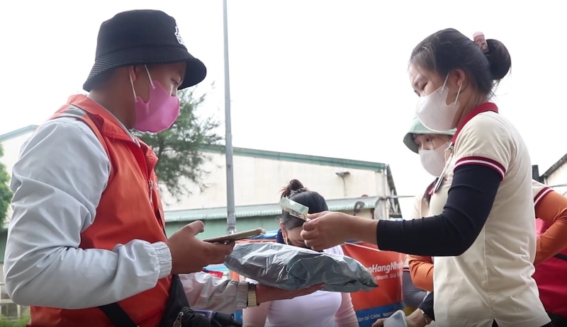 Shipper giao hàng cho công nhân KCN Trường Xuân, TP Tam Kỳ. Ảnh: Hoàng Bin.“Điện thoại tôi lúc nào cũng trong tình trạng nóng máy vì gọi liên tục mỗi ngày hàng trăm cuộc. Không phải đơn nào giao cũng có khách nhận ngay, nhiều khi gọi 2-3 lần mới được. Để kịp giao cho khách, tôi phải nhịn cả ăn trưa, có hôm 21h tối còn ở ngoài đường” - Hoàng kể.