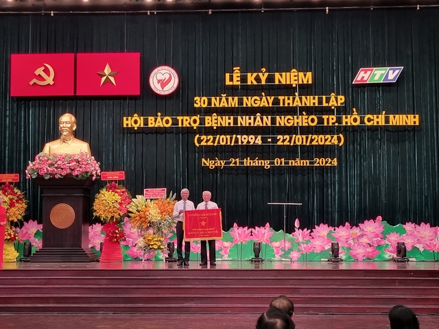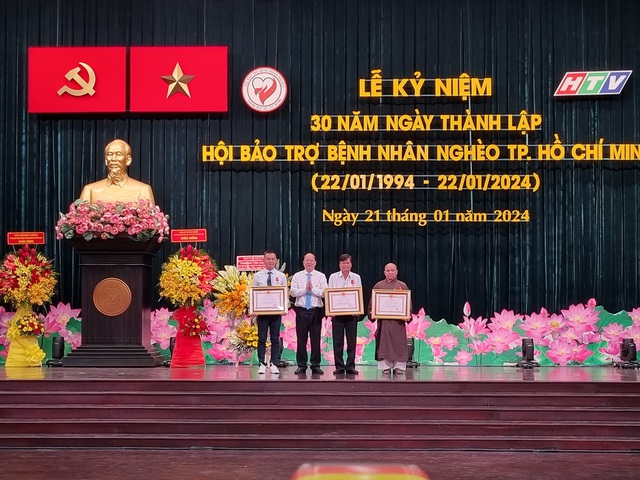 Ông Võ Văn Hoan, Phó Chủ tịch UBND TP.HCM trao Cờ truyền thống cho Hội Bảo trợ bệnh nhân nghèo TP.HCM; UBND TP cũng tặng bằng khen cho các tổ chức, doanh nghiệp và cá nhân có nhiều đóng góp trong công tác xã hội, từ thiện