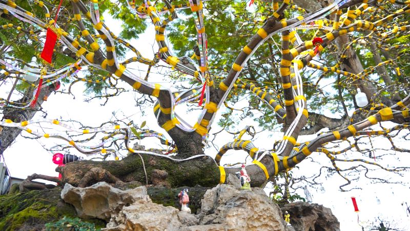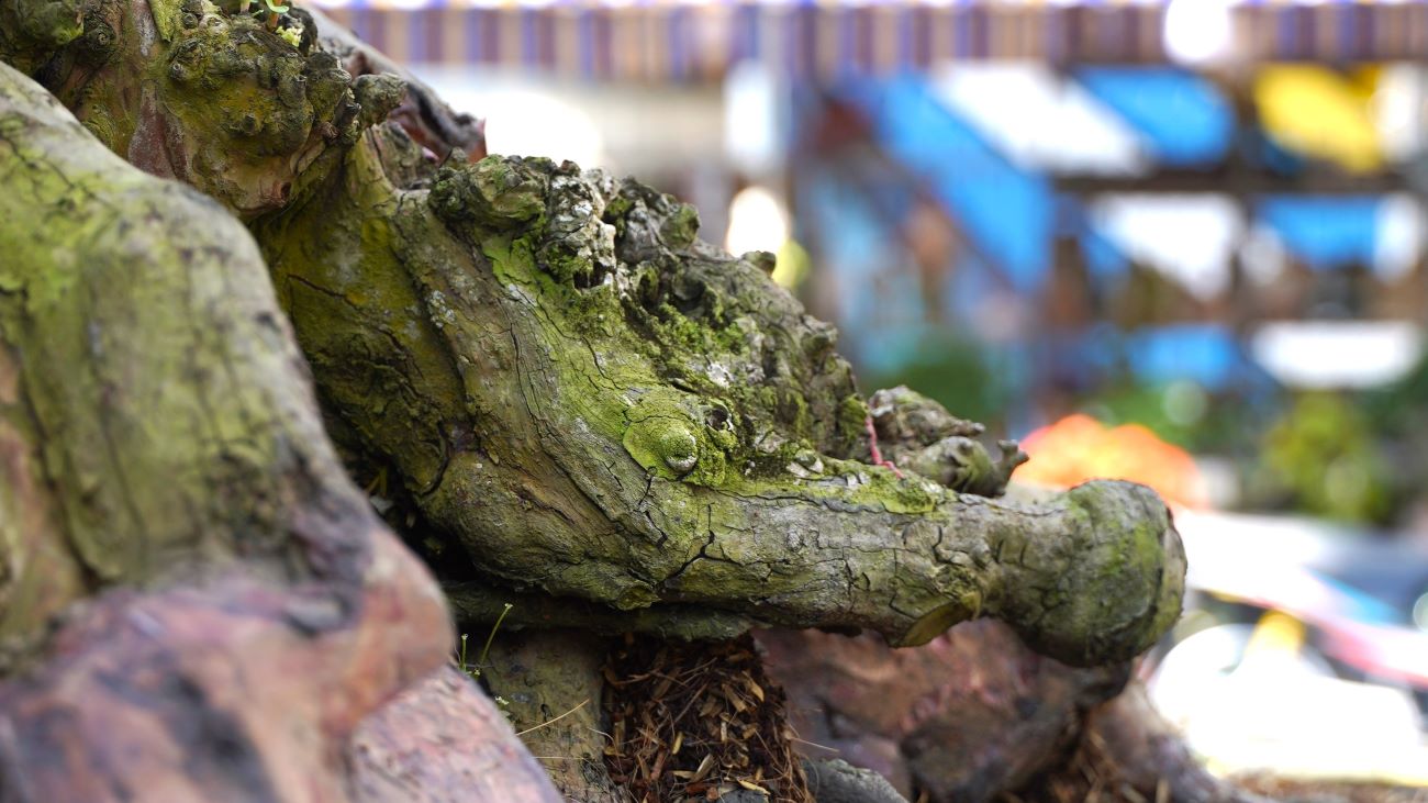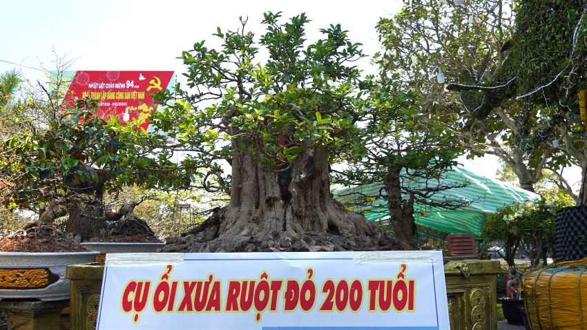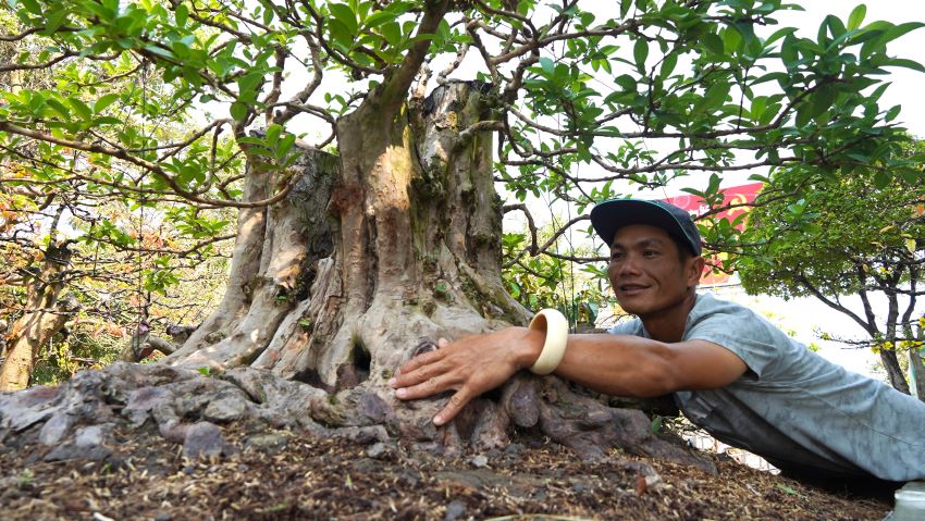 "Cây ổi được tôi mua từ vùng đất đỏ Đắk Nông. Trong giới chơi cây cảnh, cây ổi xưa này được xem là hàng độc. Hiện chưa ai xác định được tuổi đời chính xác của nó, nhưng nhìn vào độ già của hoành thân có thể ước 200 tuổi”, anh Tuấn nói thêm. Nguồn: https://laodong.vn/photo/doc-la-vu-sua-gan-dau-rong-keu-gia-tram-trieu-tai-cho-hoa-tet-o-an-giang-1299135.ldo
