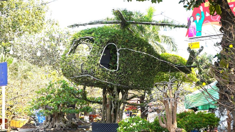Điển hình, cây mai chiếu thuỷ hình máy bay trực thăng với giá bán 600 triệu đồng. Cây mai có đủ buồng lái (khoang trống có thể chịu được trọng lượng khoảng 150kg, chứa 1 người ngồi vào), đuôi, cánh và chân máy bay. “Chiếc máy bay” này có tuổi đời trên 100 năm tuổi, với chiều cao khoảng 4m, thân dài 6m, đường kính cánh máy bay 3m.