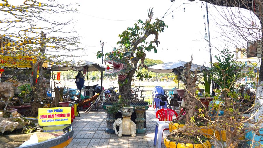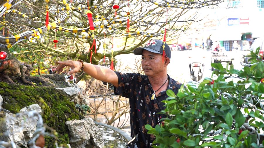 Song song đó, những tác phẩm cây cảnh của anh Thái Văn Tuấn (38 tuổi, quận Thốt Nốt, TP Cần Thơ) cũng được xem là tâm điểm thu hút tại chợ hoa Xuân Long Xuyên năm nay.