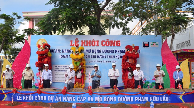 Cụ thể, khởi công dự án nâng cấp và mở rộng đường Phạm Hữu Lầu (đoạn từ cầu Cái Tôm đến đường Thiên Hộ Dương, thuộc P.4 và P.6, TP.Cao Lãnh), tổng kinh phí đầu tư hơn 133,5 tỉ đồng. Công trình có tổng chiều dài hơn 1,1 km, gồm các hạng mục: nền đường rộng từ 31,5 - 42 lm thảm bê tông nhựa nóng; hệ thống thoát nước, chiếu sáng công cộng; 2 cống hộp Cái Sâu, Cái Tôm... Công ty CP Nhơn Thành - Công ty Thiên An trúng thầu thi công, dự kiến hoàn thành trong tháng 3.2025.