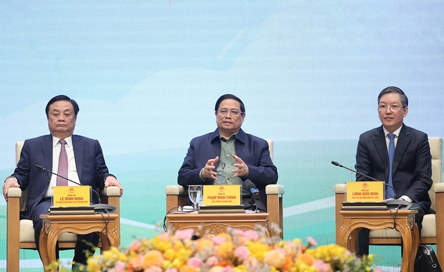 Phát biểu kết luận buổi đối thoại, Thủ tướng Phạm Minh Chính nhấn mạnh, những năm qua, nông nghiệp nước ta đã đóng vai trò trụ đỡ của nền kinh tế. Đặc biệt tăng trưởng GDP nông nghiệp năm 2023 ước đạt tới 3,83%, cao nhất trong 10 năm trở lại đây. Năm 2023 đánh dấu mốc quan trọng, lần đầu tiên trong lịch sử VN xuất khẩu trên 8 triệu tấn gạo với tổng giá trị 4,8 tỉ USD. Thủ tướng nêu rõ, việc phát triển nông nghiệp tuy đã đạt được những kết quả tích cực, song tăng trưởng nông nghiệp thời gian qua vẫn chủ yếu dựa trên "tư duy sản xuất", cần nhanh chóng chuyển đổi sang "tư duy kinh tế", tích hợp đa giá trị, gắn với phát triển xanh và bền vững.