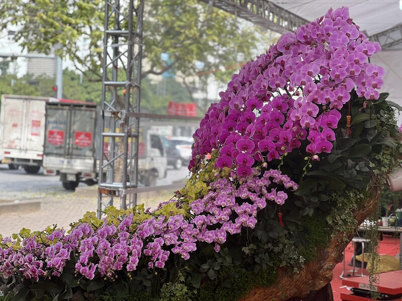 Chậu lan có giá 150 triệu đồng. Ảnh: Anh TuấnÔng Nguyễn Văn Phú - tiểu thương tại đường Hoàng Quốc Việt (Cầu Giấy) cho biết, năm nay, những chậu lan có giá từ 5 - 30 triệu đồng được khách hàng lựa chọn để đặt tại văn phòng làm việc, hoặc tặng khách hàng, đối tác. Còn những chậu lan nhỏ, từ 3 - 5 cành được khách hàng lựa chọn bày tại nhà.